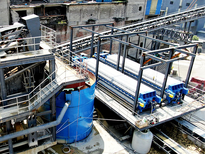 尾礦脫水系統(tǒng)可以處理70%~80%左右的尾礦,尾礦含水率15%~20%,干尾礦可以直接通過皮帶運(yùn)輸?shù)?..